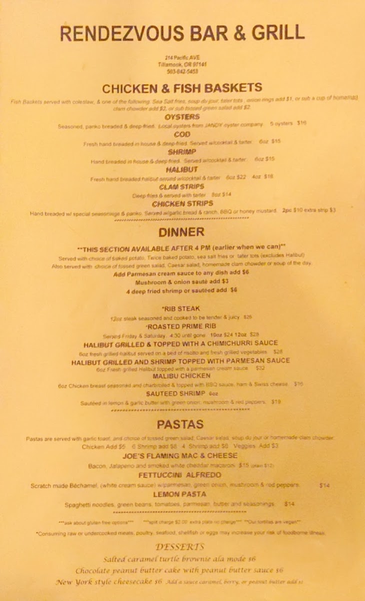 Welcome to Rendezvous Bar & Grill - Tillamook, a charming eatery located at 214 Pacific Ave, Tillamook, OR. This vibrant venue brilliantly marries casual dining with comfort, making it a favorite among locals and visitors alike. The menu offers a delightful variety of options, showcasing fresh ingredients and bold flavors.